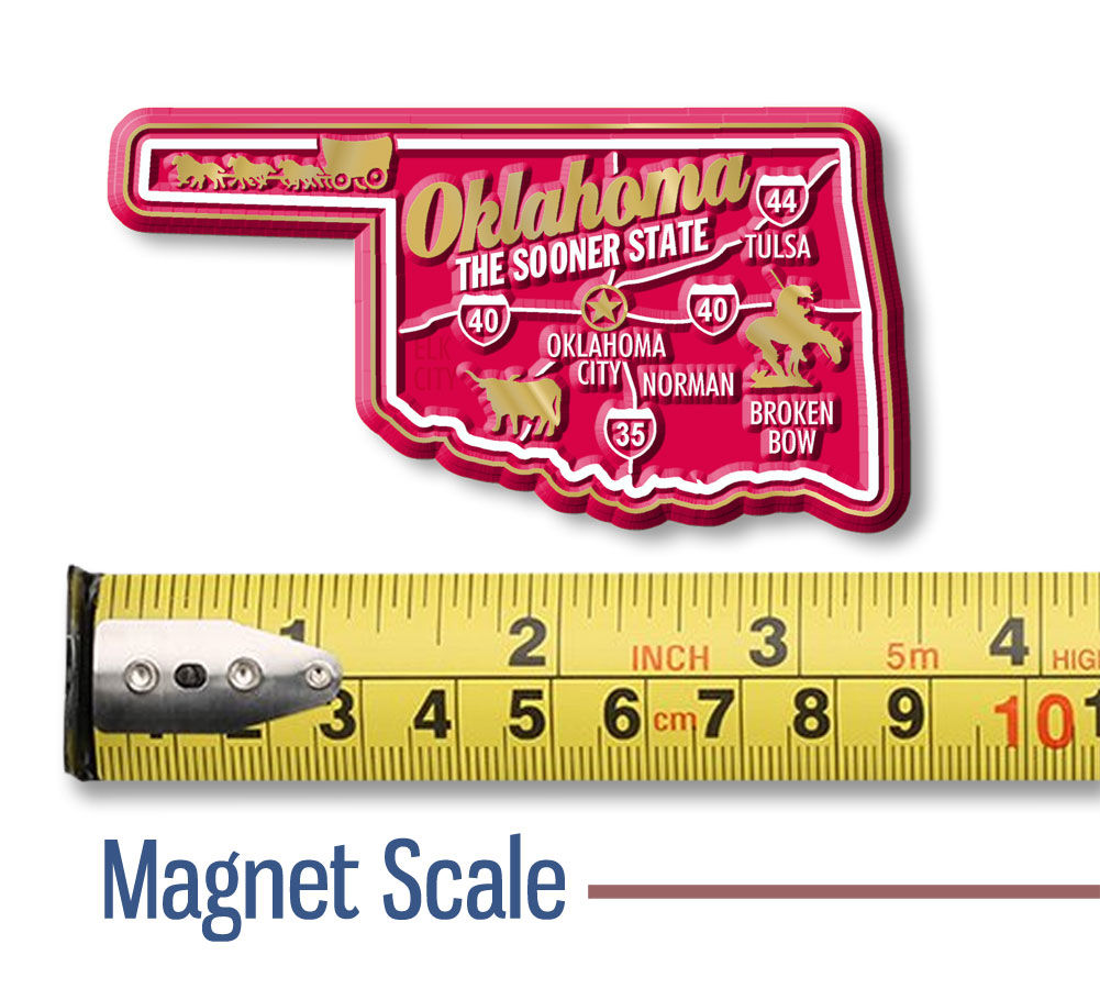 All of our magnets are 100% made in the USA, ensuring top-quality craftsmanship and design. Perfect for any refrigerator or magnetic surface, this Oklahoma Premium State Magnet is a great gift or collectible item.